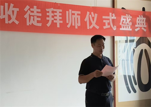 当天上午9点,拜师仪式在东营市一鸣画院院长马中华的贺辞中启幕。马院长以“一笔一乾坤,一字一世界”盛赞焦体隶书的独特魅力,并对焦念良先生的新弟子夏婉婷寄予厚望。焦念良先生全国弟子代表、明瑞超市经理王玉明随后发言,以“墨香传家远,薪火赖后生”寄语师妹笃学尚行、再谱华章。