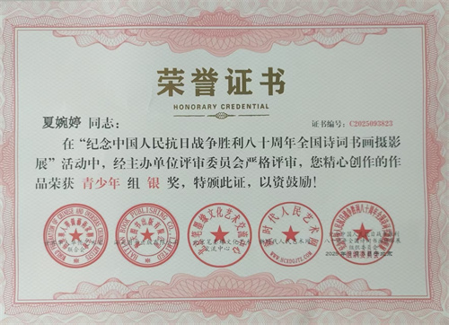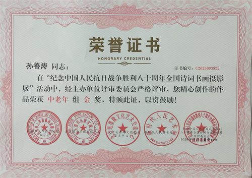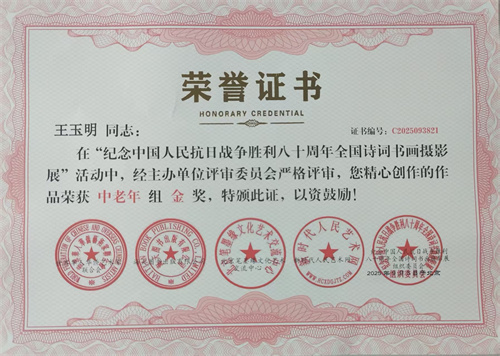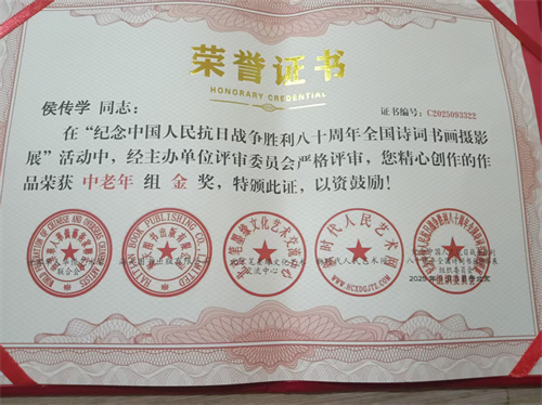 焦念良的徒弟王玉明.孙善涛,候传学.夏婉婷荣获<纪念中国人民抗日战争胜利80周年全国诗词书画摄影展>金奖银奖并受邀参加11月8日北京国际会展中心举办的书画展和颁奖盛会。