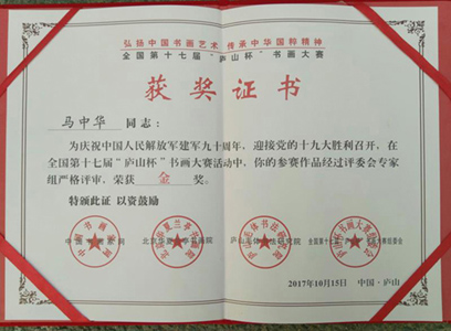 翰墨颂中华,喜迎十九大。山东省东营市一鸣画院主要领导马中华、焦念良、张书凤、马龙刚一行四人从山东省东营市自驾车启程到江西九江庐山至井冈山到五台山参加书画大赛颁奖会和书画笔会及文化艺术交流。