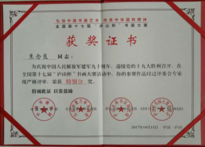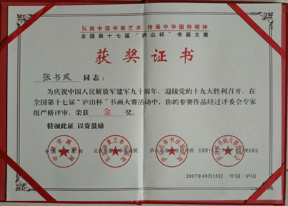 第二站:10月15日参加全国第十七届“庐山杯”书画大赛颁奖会。