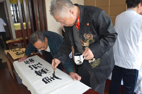 一鸣画院主要领导马中华、焦念良、张书凤、马龙刚书画交流万里行。