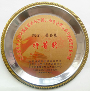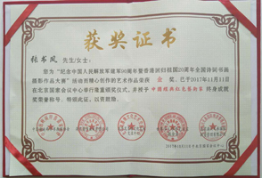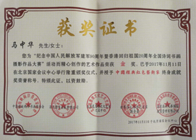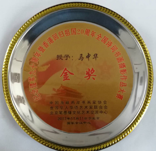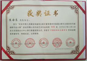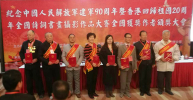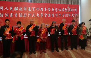 2017年11月10日至13日、一鸣画院主要领导马中华、焦念良、张书凤、马龙刚应邀参加了北京笔墨缘组织的为了《纪念中国人民解放军建军90周年暨香港回归祖国20周年全国诗词书画摄影作品大赛》在国家会议中心隆重召开的颁奖盛典大会。焦念良荣获此次大会的特等奖、马中华、张书凤荣获金奖。