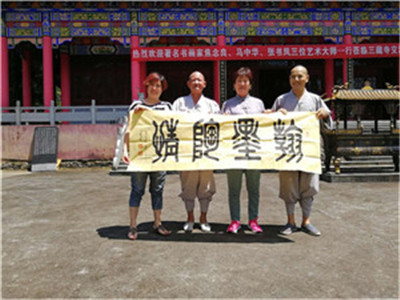 2018年7月15日至29日、东营市一鸣画院院长马中华、执行院长焦念良、常务院长张书凤、秘书长马龙刚一行四人应湖北省三藏寺住持释振家的特邀参加佛教书艺交流。16日下午我们四人到达三藏寺时、三藏寺住持释振家、传灯寺住持释古莲、法师释古杨带领寺庙的护法、监院、比丘尼、皈依居士等众在三藏寺山门迎接,大雄宝殿上悬挂着巨幅《热烈欢迎著名书画家焦念良、马中华、张书凤三位艺术大师一行莅临三藏寺交流书艺》,住持释振家的欢迎晚宴设在素食接待厅,使我们真正享受到了佛家素食斋饭的美味。17日我们参拜了三藏寺大雄宝殿和藏经阁以及舍利子水晶塔,住持释振家给我们做了细致的讲解。18日在大雄宝殿后堂举行了书艺交流典礼,典礼台上摆放着焦念良捐赠的《悟道》《佛光普照》《花开见佛》《厚德载物》四幅国家非物质文化遗产焦体隶书作品。到会的是佛家曾众、焦氏宗亲和各界朋友。传灯寺住持释古莲主持典礼开始、三藏寺住持释振家致欢迎词、武汉同济医院原副院长张广道教授应释振家主持邀请前来祝福并讲话、焦念良致答谢词。书艺交流在温暖互敬的气氛中进行了一天。19日参拜传灯寺、白马寺进行交流。20日参拜《焦氏宗祠》。21日参拜《甘露寺》。22至25日游览《九宫山》和《隐水洞》。28日结束活动,29日返回东营。此次活动、领悟到了佛法无边、佛光普照、大慈大悲、一花一天堂,一草一世界,一树一菩提,一土一如来,一方一净土,一笑一尘缘,一念一清净的真谛,阿弥陀佛。 2018.8.1