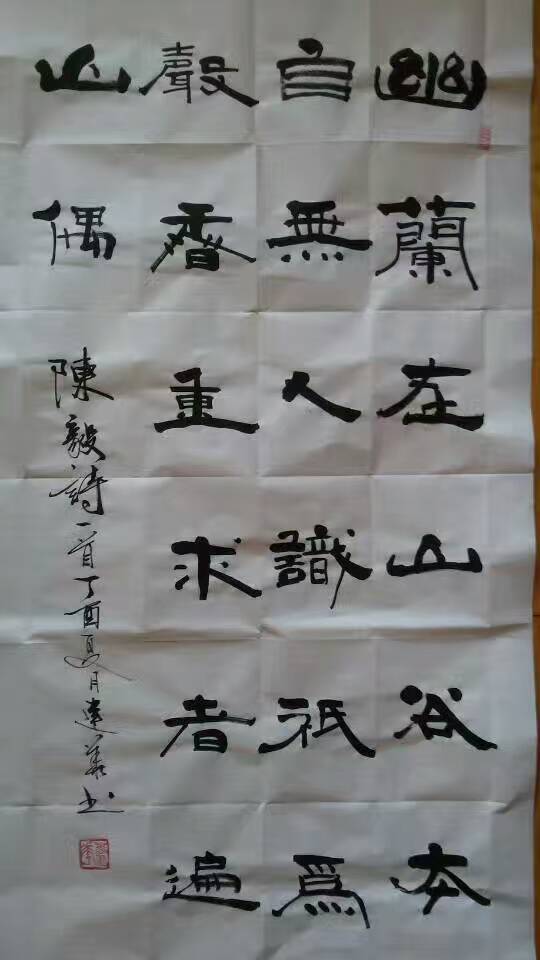 2015年参加中国书法家、美术家总会第一届书画比赛,荣获隶书书法特等奖。