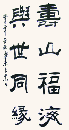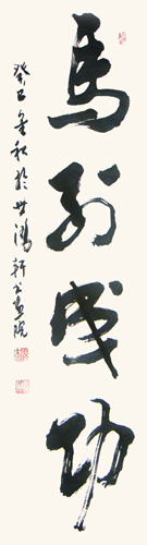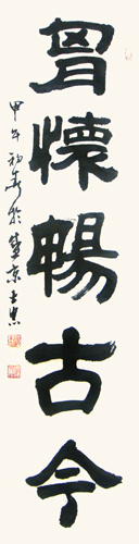 2005年 大篆书“开张天岸马、奇逸人中龙”文化部收藏、《获一等奖》。